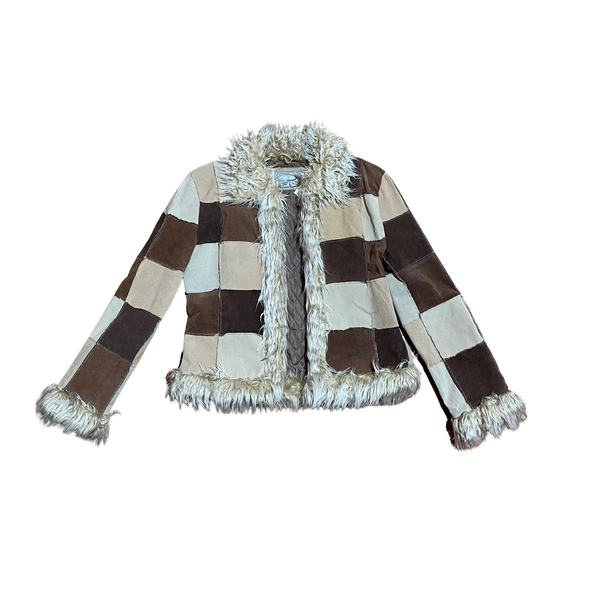 Y2K STUNNER Rave Patchwork Leather Jacket - M